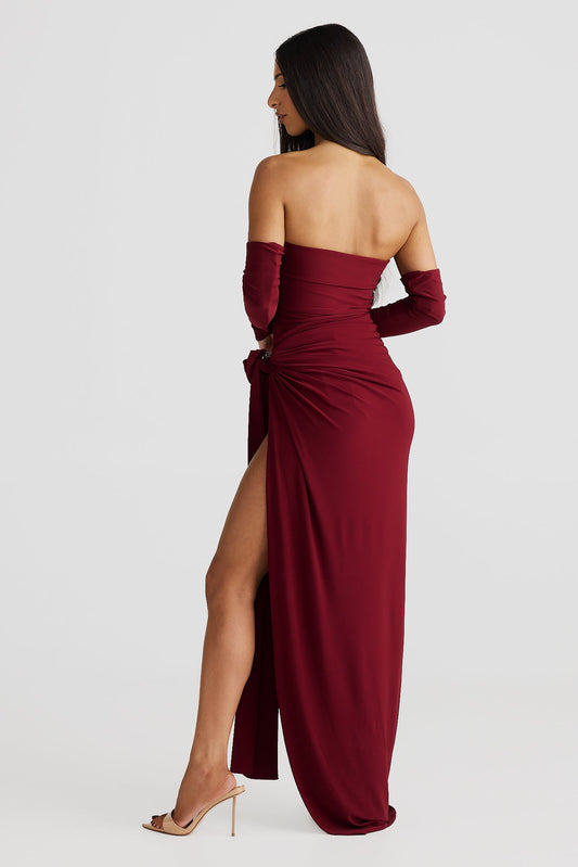 Gina Toplanmış Düğümlü Kot Midi Gömlek Elbise