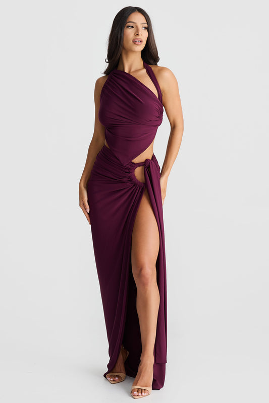 Lindsay Çiçek Baskılı Tek Omuz Uzun Elbise