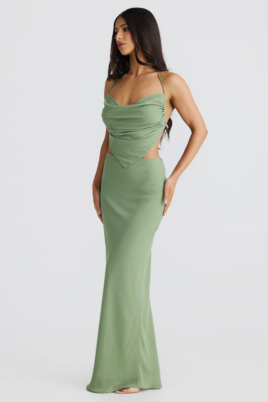 Arlene Kıvrımlı V Yaka Uzun Elbise