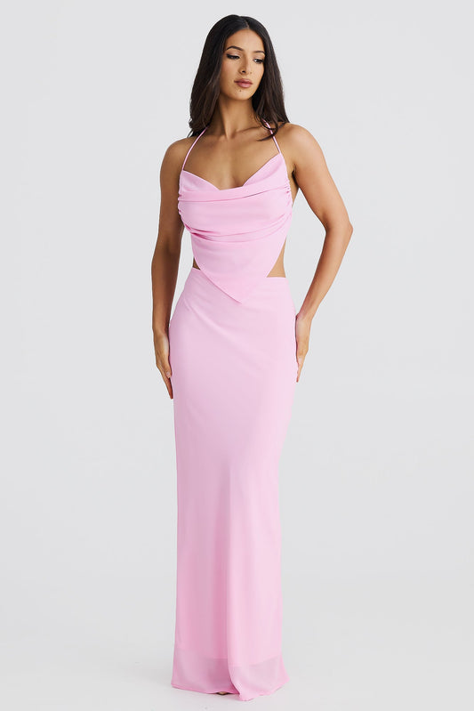 Antonia Baskılı Halter Yaka Uzun Elbise