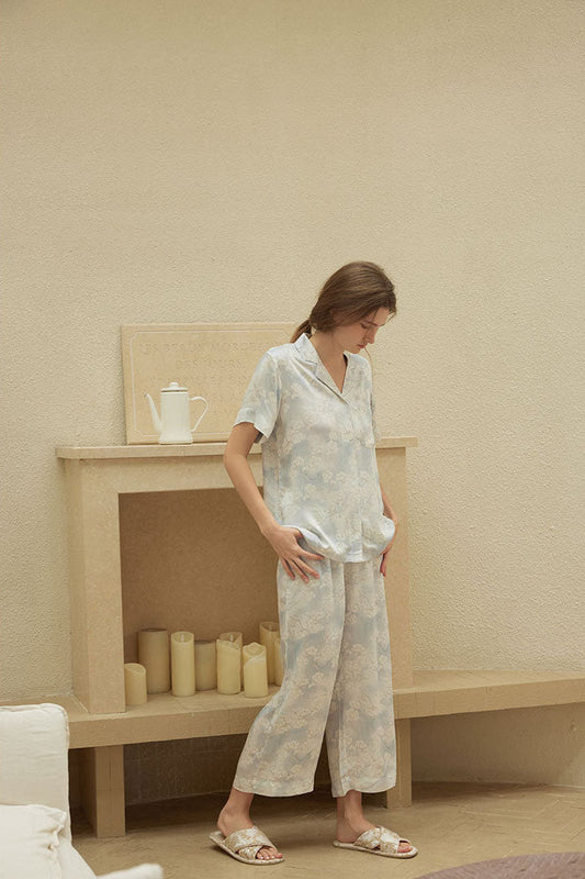 Saten Çiçeği Çiçek Desenli Pijama Takımı