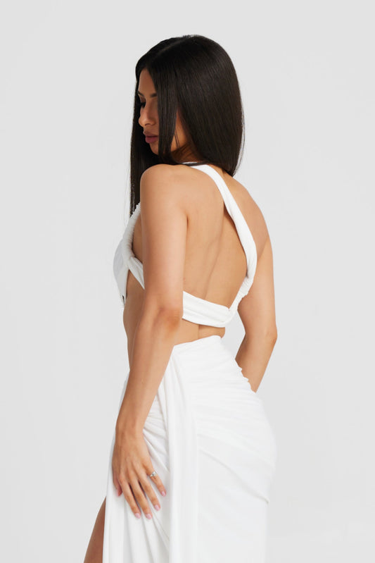 Yedda Halter Yaka Tığ İşi Uzun Elbise