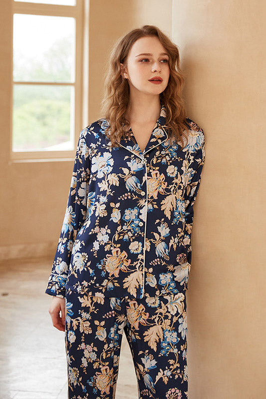 Begonya Çiçeği Desenli Uzun Kollu Pijama Takımı