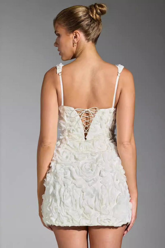 Beyaz Çiçek Aplikeli Korse Mini Elbise
