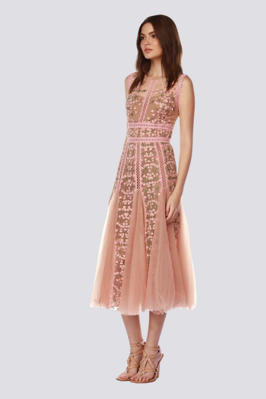 Beverly Floral Aplike Tığ İşi Uzun Elbise