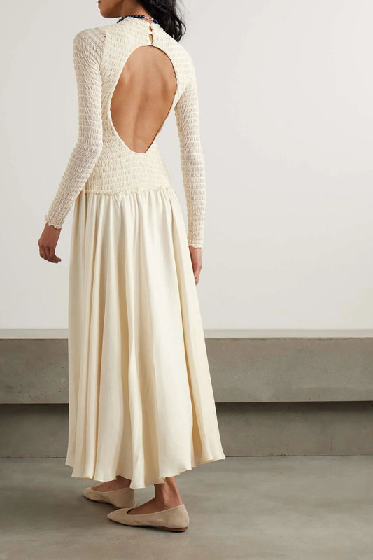 Bej Renkli Octavie Büzgülü Korse Maxi Elbise