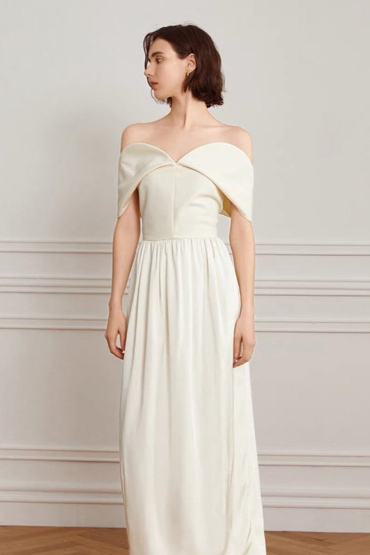 Claudine Straplez Kıvrımlı Uzun Elbise Bej