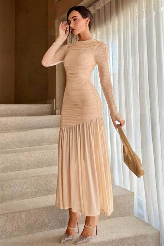 Jessie Uzun Kollu Pileli File Maxi Elbise