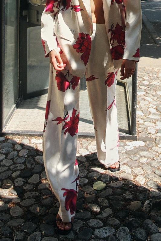• Jasmin Balon Kol Çiçekli Pantolon Takım