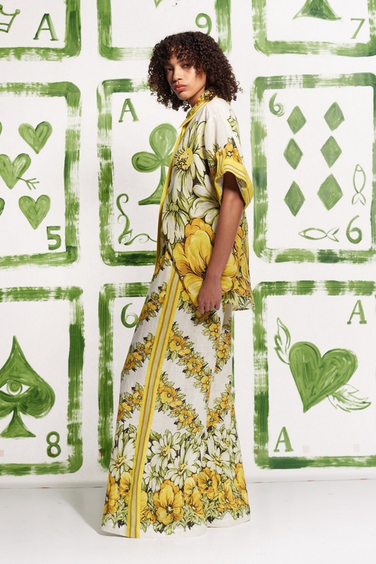 Botanik Çiçek Desenli Bol Pantolon Takımı