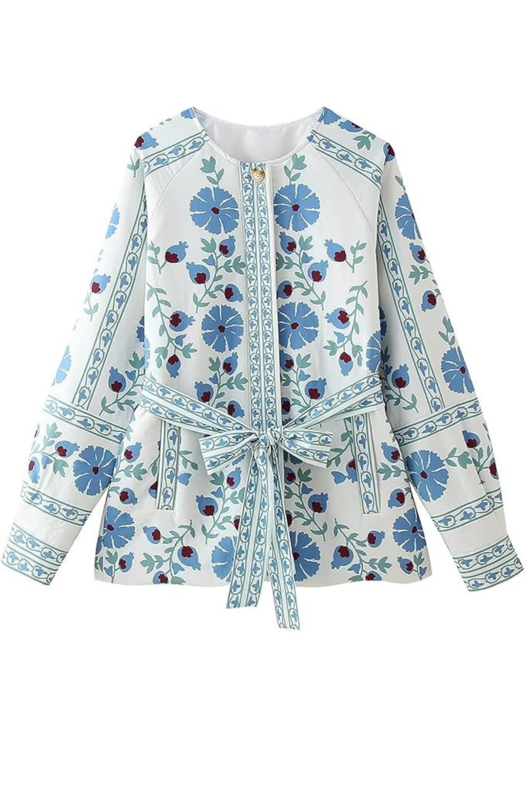 Baskı desenlidir,nakış değildir. Çiçek deseniyle süslenmiş bu ürün, tasarımına benzersiz bir dokunuş katan karmaşık bağcık detayları, düğmeler ve patchwork unsurlara sahiptir.
